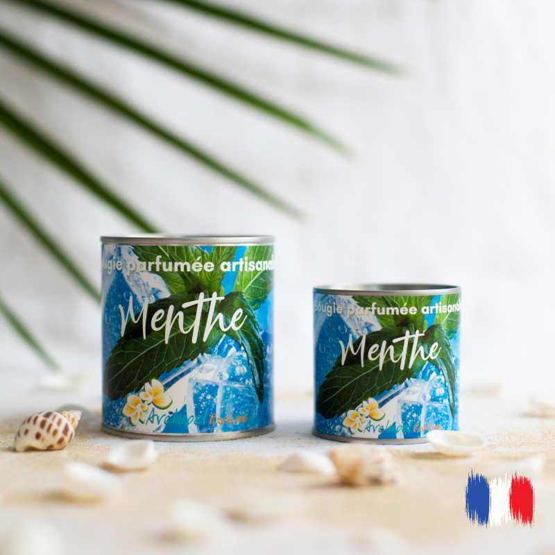 Le parfum de la bougie naturelle Menthe Fraiche est imaginé et confectionné à Grasse, capitale du parfum français dans une petite entreprise familiale.