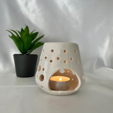 Brûle-parfums céramique blanc bulles