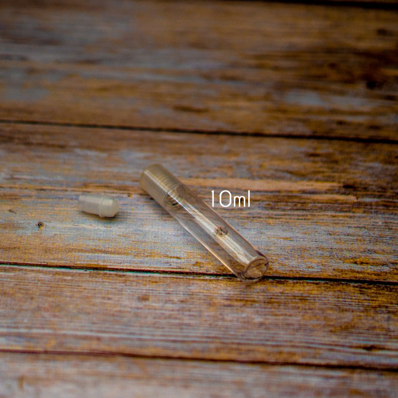 Petit roll-on de contenance 10ml pour conserver et emporter avec vous vos synergies préparées à base d'huiles essentielles et d'huile végétale.