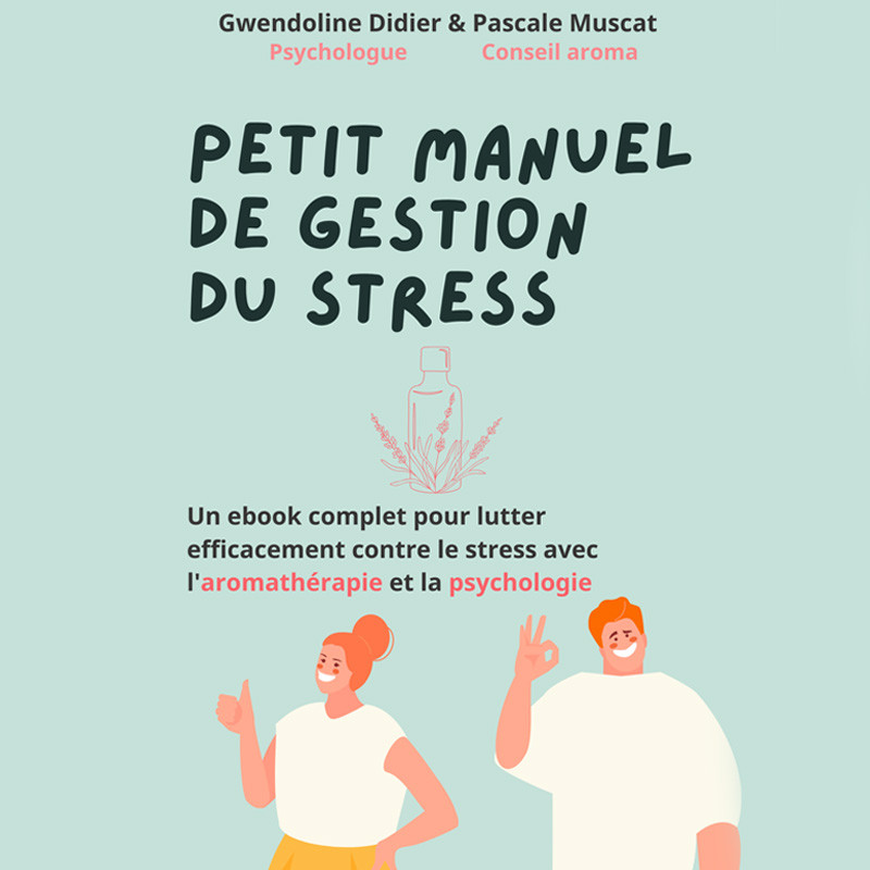 Ebook gestion du stress par l'aspect psychologique et par l'aromathérapie, rédigé par Gwendoline Didier, psychologue et Pascale Muscat, conseillère en aromathérapie