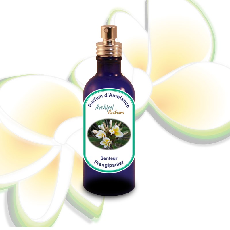 Parfums d'ambiance et brume d'oreiller à base dune création parfumée senteur Fleur de Frangipanier (Création exclusive Archipel Parfums).